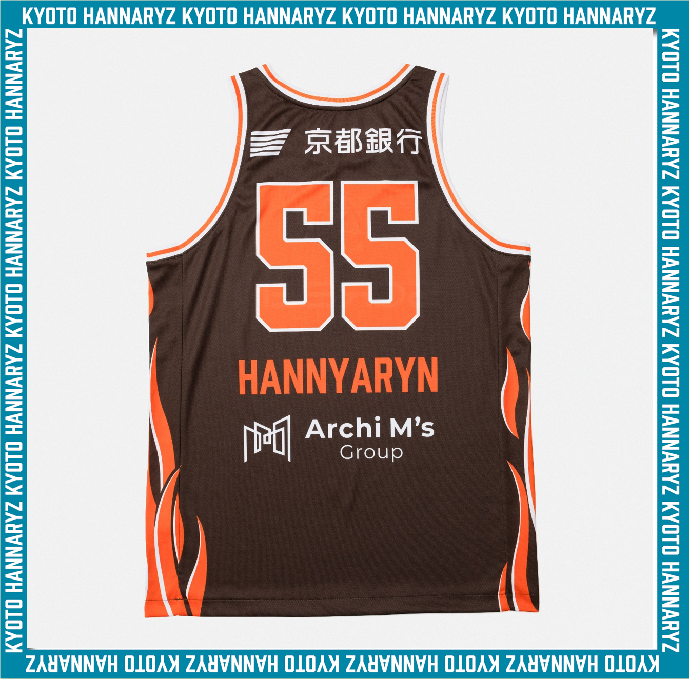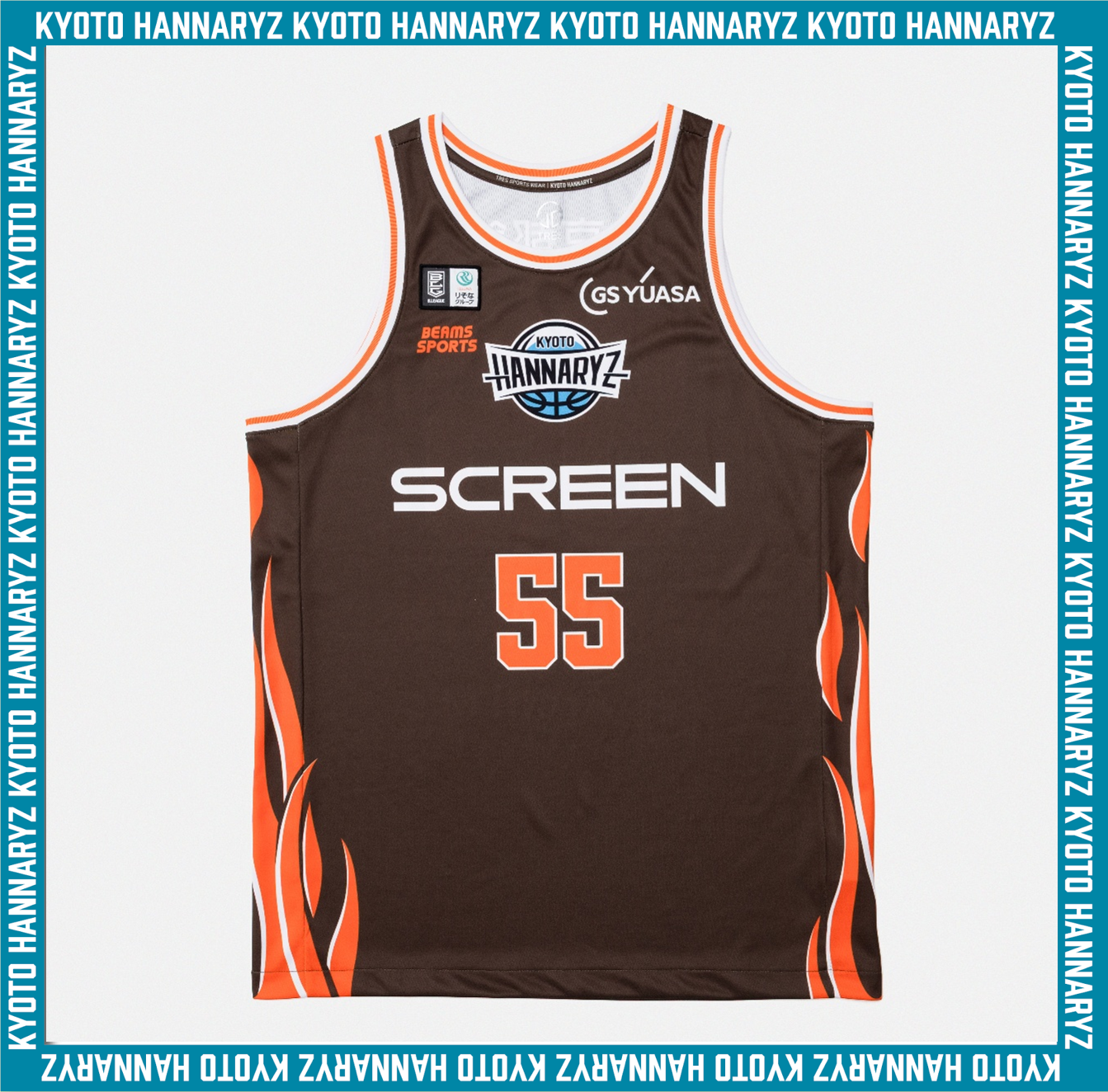 そこに、BEAMS SPORTSが、京都ハンナリーズに対して抱いた印象である「静かに燃える闘志」を、〈BEAMS SPORTS〉のオレンジを添えて表現しました。特徴的な文化のある街で、ブースターやプレーヤーの燃え上がる闘志をイメージしたデザインにしました。